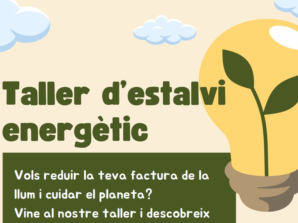 04 de novembre Taller d’estalvi energètic Informació: Vols reduir la teva factura de la llum i cuidar el planeta? Vine al nostre taller i descobreix com fer un ús més eficient de l’energia a casa teva.