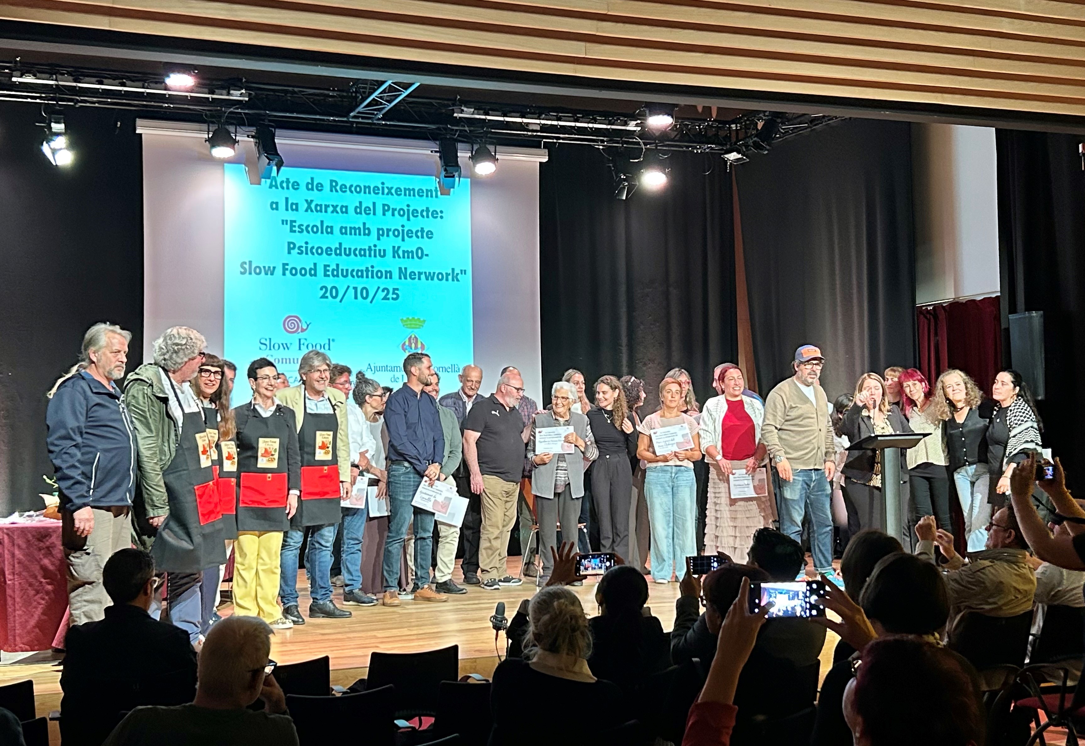 | | Acte de reconeixement al projecte Slow Food Educació a Sant IldefonsAhir, dilluns 20 d'octubre, l'Auditori de Sant Ildefons va acollir un acte de reconeixement a les escoles, productors i col·laboradors del projecte “Escola amb projecte psicoeducatiu km0 - Slow Food Education Network”, dins de la Setmana Bio i del programa Slow Food Educa Catalunya. Van participar figures destacades com la xef Carme Ruscalleda, Paula Pérez de la Xarxa d'Escoles Verdes, els copresidents de Km0 Slow Food Catalunya, Elisenda Casadellà i Martí Rosàs, així com l'alcalde Antonio Balmón. En un entorn pròxim i inspirador, es va valorar la labor que realitza el sector educatiu amb la finalitat de fomentar una alimentació més saludable i local, on els estudiants de 3r de l'Escola Sant Ildefons van oferir una actuació molt especial amb "La cançó de la col paperina" i es va presentar el llibre “El gust del Saber, Gent gran, petites receptes” de Núria Callau. Més informació |